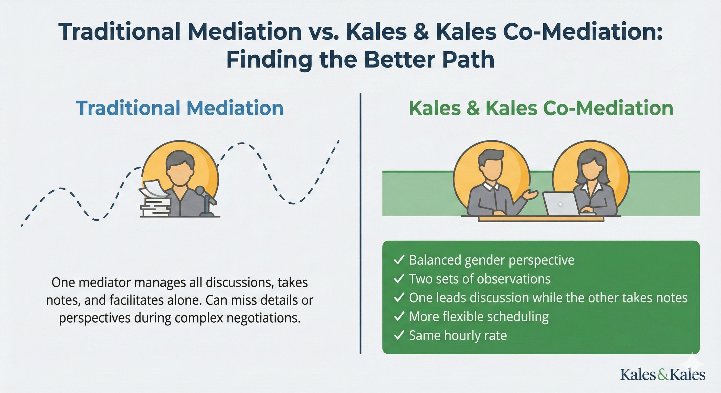 Divorce mediation is a structured, private process that helps couples reach fair, durable agreements without the cost or conflict of litigation. Our approach keeps you in control of your outcome while reducing stress, legal fees, and time in the system.